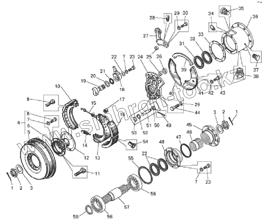 Каталог запасных частей к технике: БелАЗ-7822. Опора промежуточная со стояночным тормозом