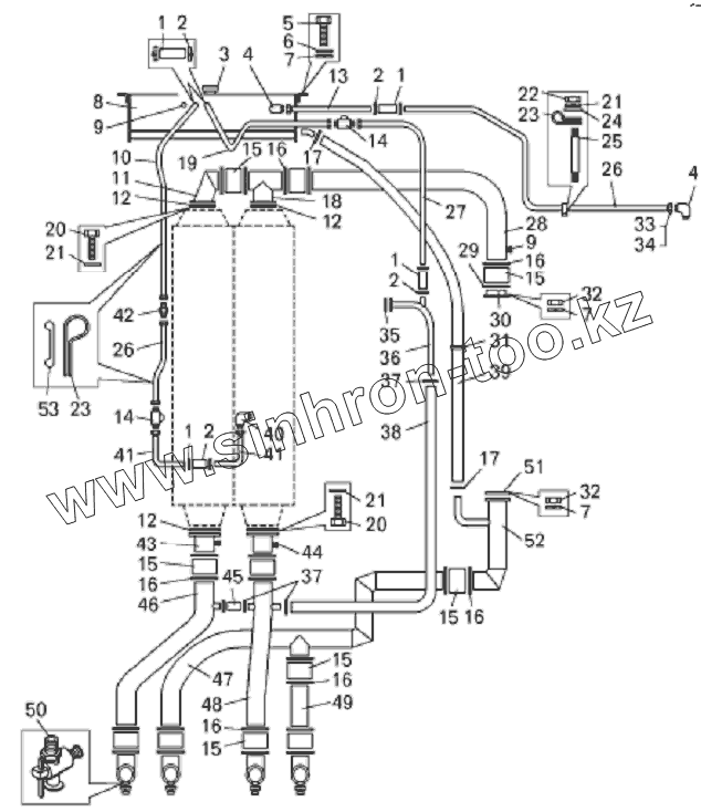 Каталог запасных частей к технике: БелАЗ-7822. Трубопроводы системы охлаждения погрузчика БелАЗ-7822
