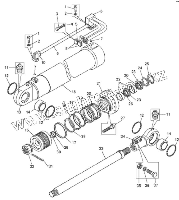 Каталог запасных частей к технике: БелАЗ-7822. Цилиндр поворота ковша