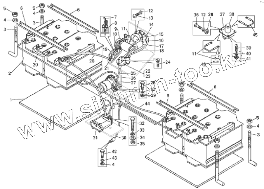 Каталог запасных частей к технике: БелАЗ-7822. Установка аккумуляторных батарей