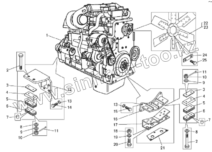 Каталог запасных частей к технике: БелАЗ-7822. Установка двигателя на погрузчике БелАЗ-78221