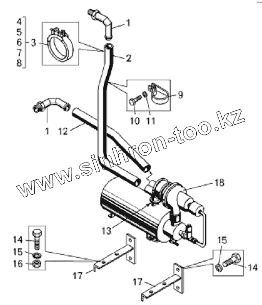 Каталог запасных частей к технике: БелАЗ-7822. Установка предпускового подогревателя на погрузчике БелАЗ-78221