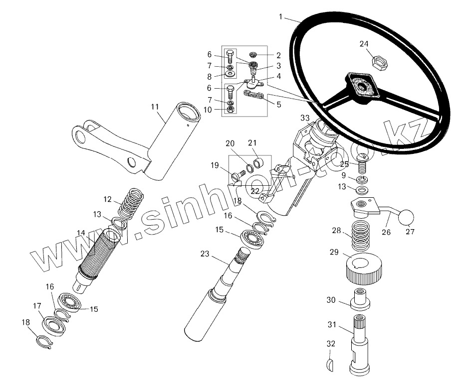 Каталог запасных частей к технике: БелАЗ-7822. Колесо рулевое с ручкой и рулевая колонка