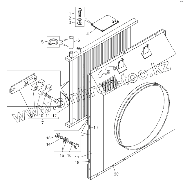 Каталог запасных частей к технике: БелАЗ-7822. Кожух с масляным радиатором погрузчика БелАЗ-7822