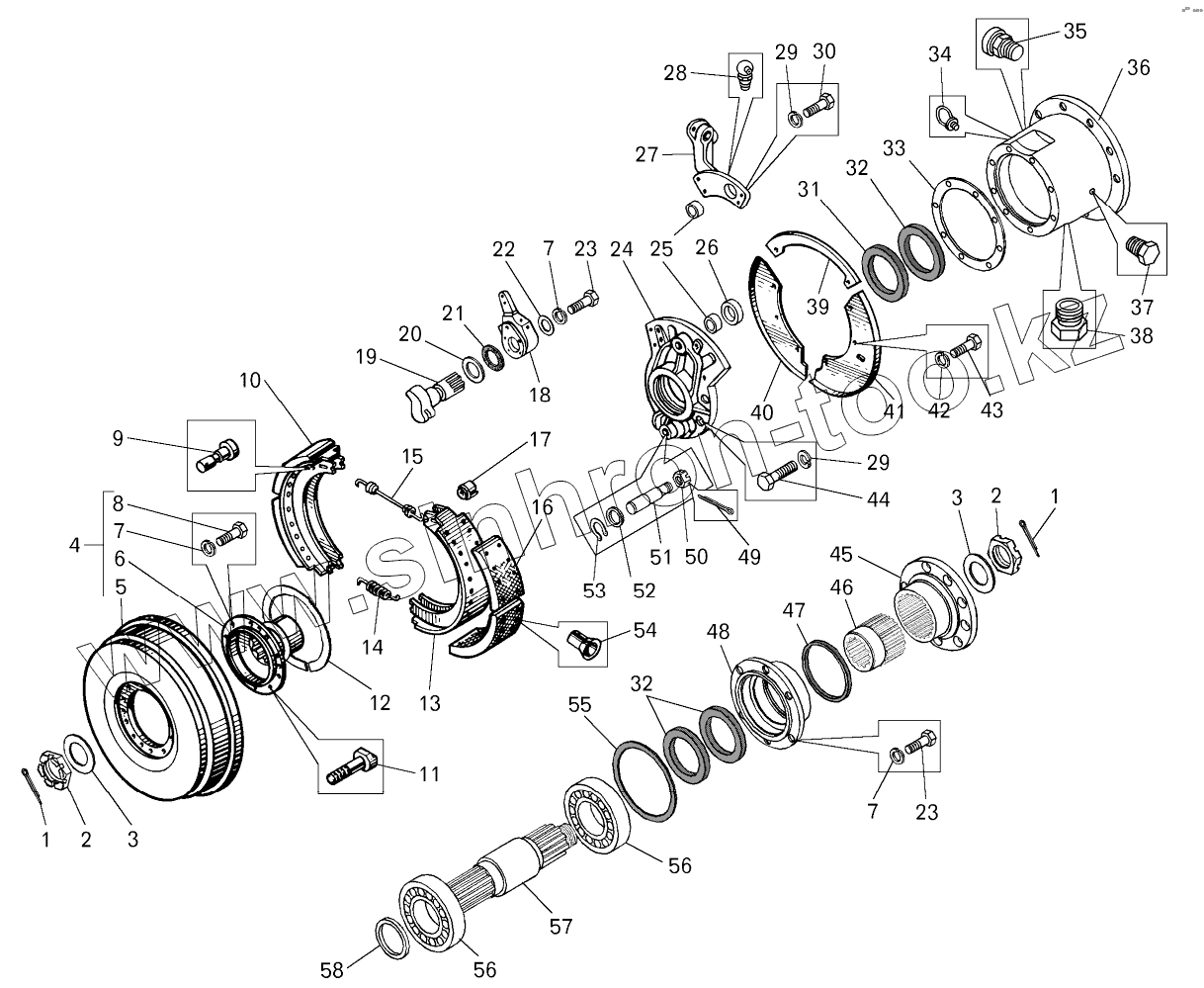Каталог запасных частей к технике: БелАЗ-7822. Опора промежуточная со стояночным тормозом
