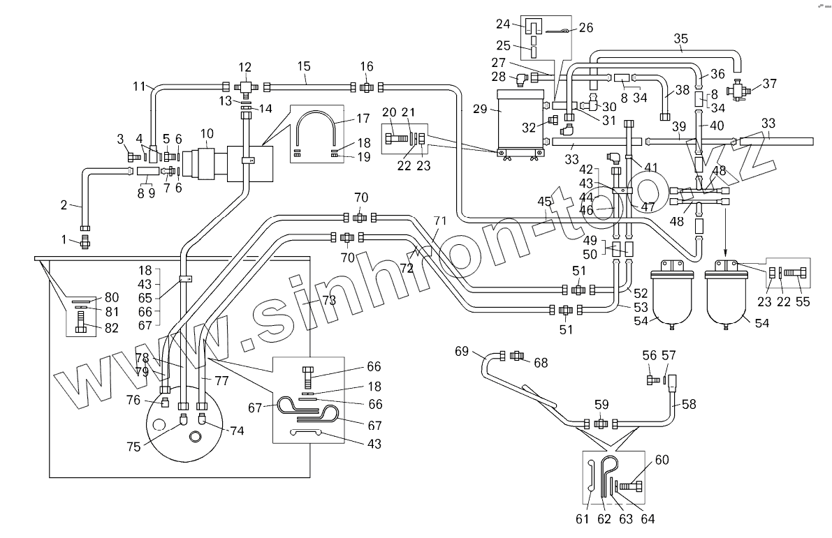 Каталог запасных частей к технике: БелАЗ-7822. Топливный бак и топливопроводы погрузчика БелАЗ-7822