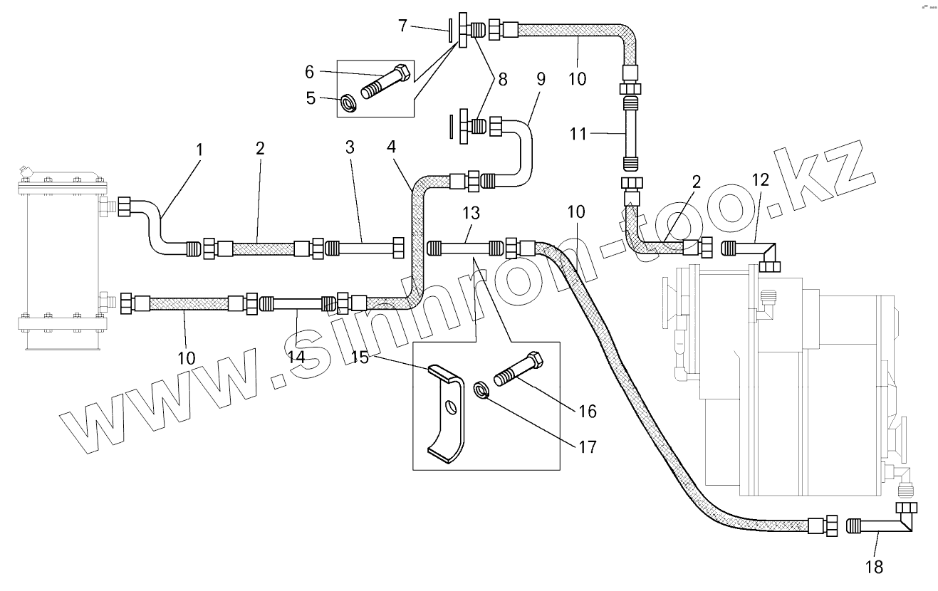 Каталог запасных частей к технике: БелАЗ-7822. Трубопроводы и шланги гидромеханической передачи погрузчика БелАЗ-78221
