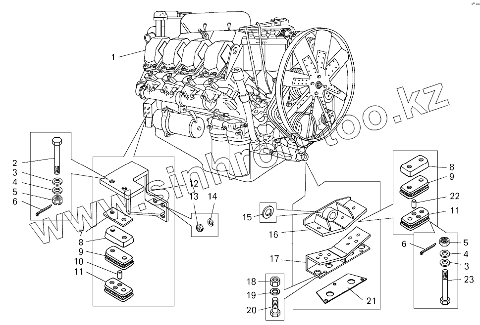 Каталог запасных частей к технике: БелАЗ-7822. Установка двигателя на погрузчике БелАЗ-7822