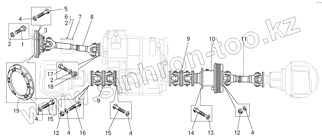 Каталог запасных частей к технике: БелАЗ-7822. Установка карданных валов на погрузчике БелАЗ-7822