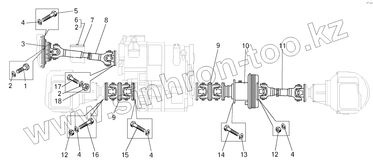 Каталог запасных частей к технике: БелАЗ-7822. Установка карданных валов на погрузчике БелАЗ-78221