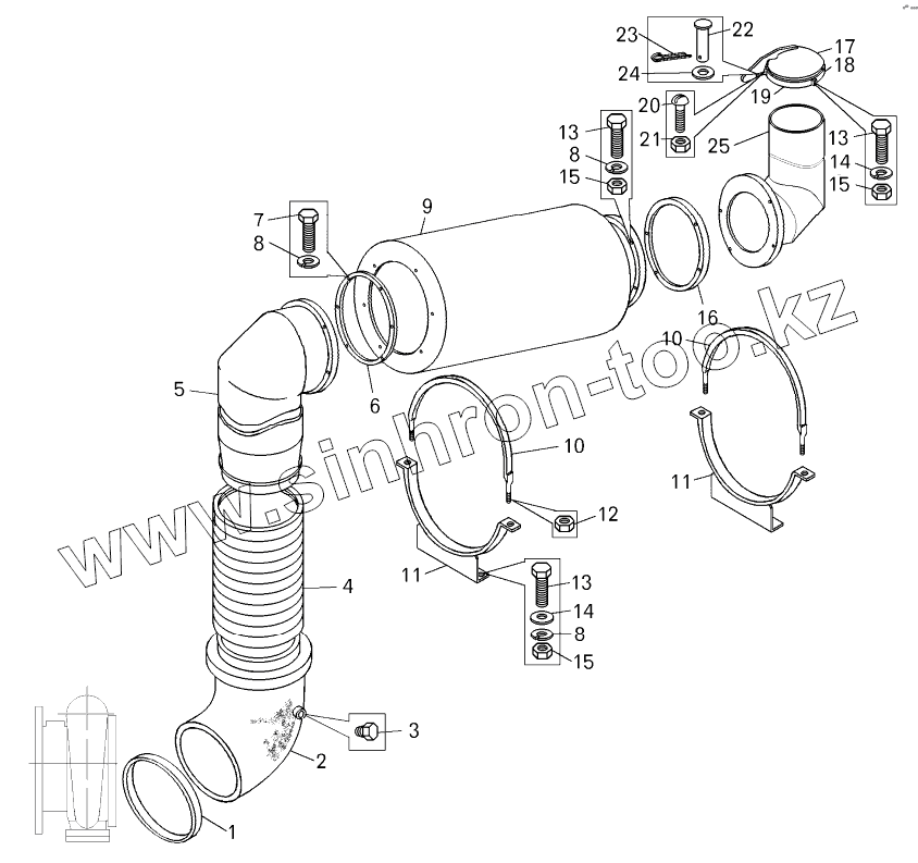 Каталог запасных частей к технике: БелАЗ-7822. Установка системы выпуска отработавших газов