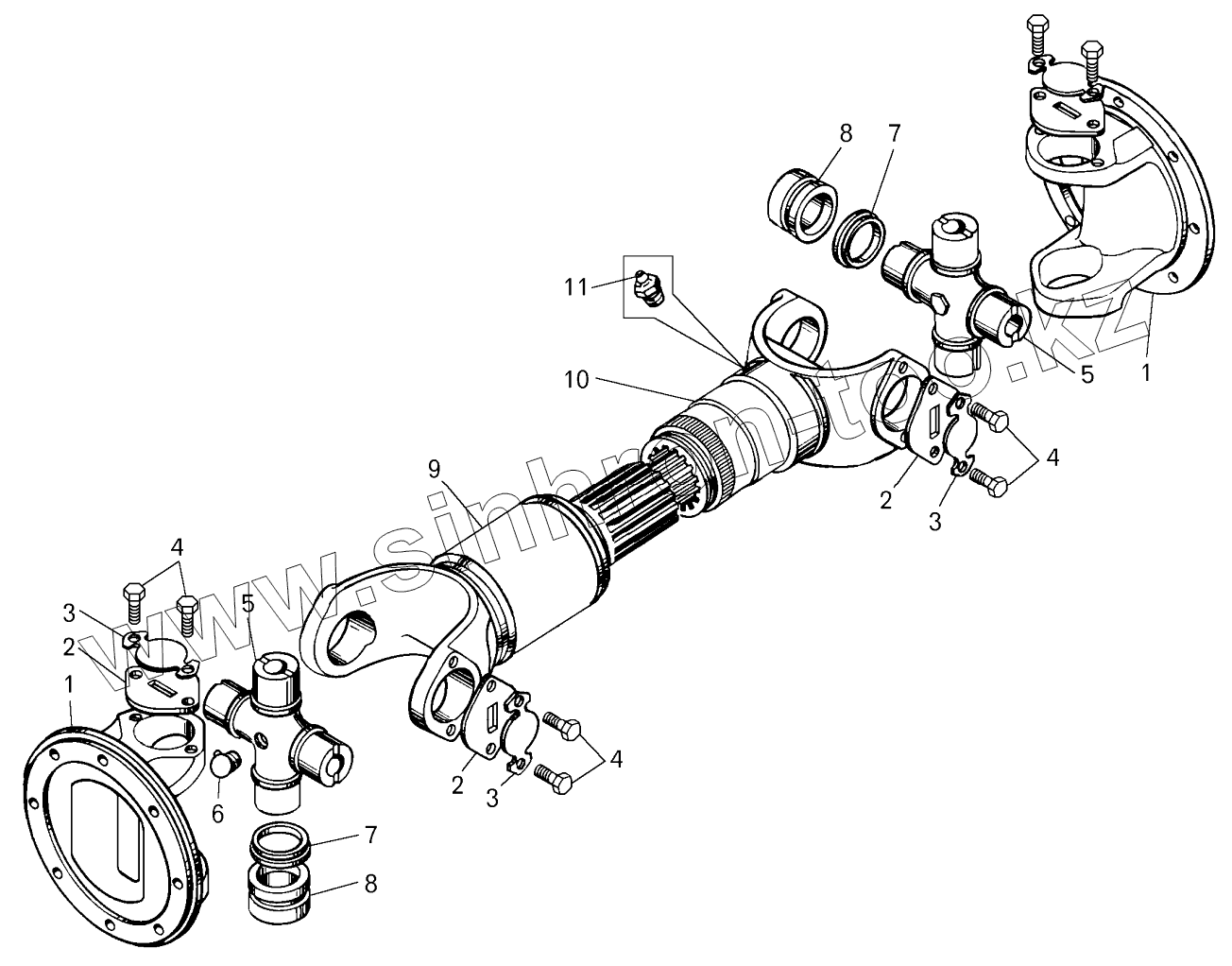 Каталог запасных частей к технике: БелАЗ-7822. Вал карданный промежуточный