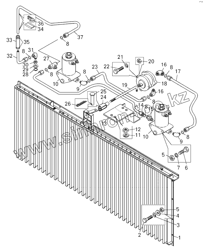 Каталог запасных частей к технике: БелАЗ-7822. Жалюзи радиатора и их привод