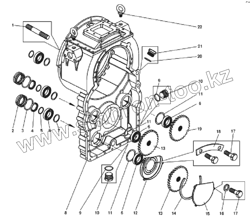 Каталог запасных частей к технике: БелАЗ-7823. Картер гидротрансформатора с приводом насосов