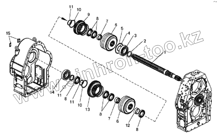 Каталог запасных частей к технике: БелАЗ-7823. Коробка передач. Установка первичного вала