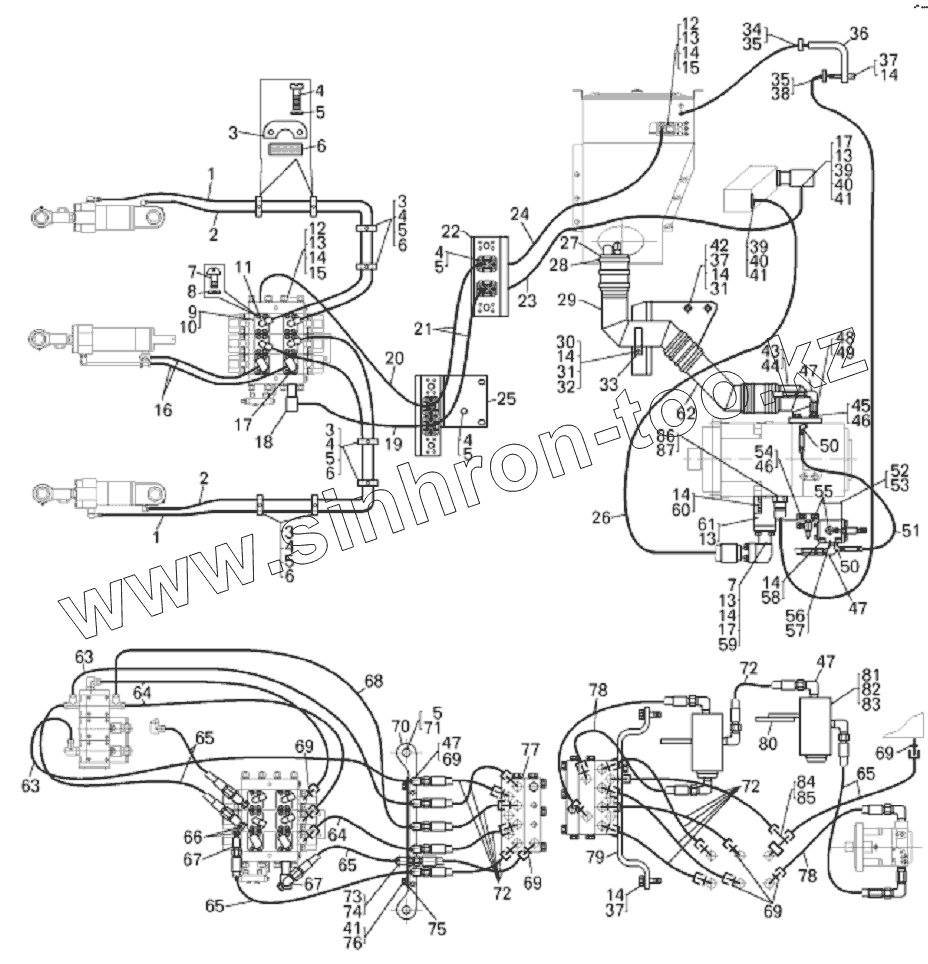Каталог запасных частей к технике: БелАЗ-7823. Трубопроводы рабочего оборудования