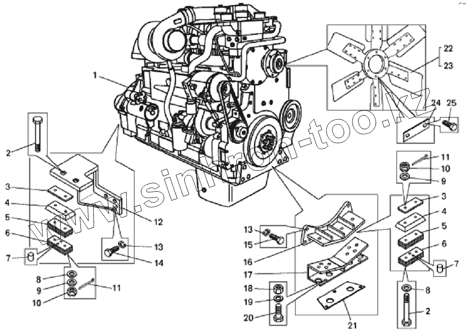Каталог запасных частей к технике: БелАЗ-7823. Установка двигателя на бульдозере БелАЗ-78231