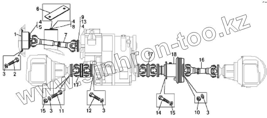 Каталог запасных частей к технике: БелАЗ-7823. Установка карданных валов на бульдозере БелАЗ-78231