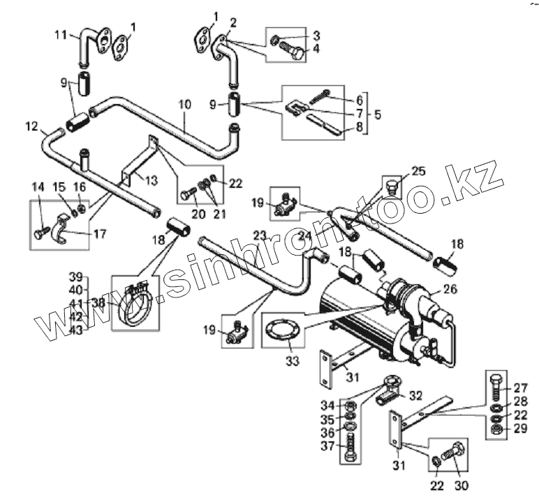 Каталог запасных частей к технике: БелАЗ-7823. Установка предпускового подогревателя на бульдозере БелАЗ-7823
