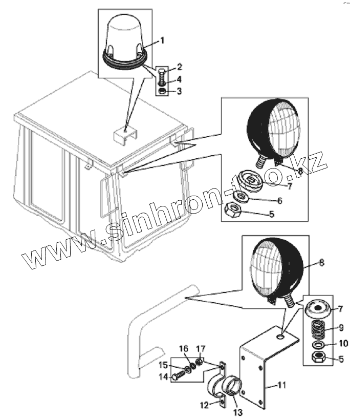 Каталог запасных частей к технике: БелАЗ-7823. Установка проблескового маяка и фар