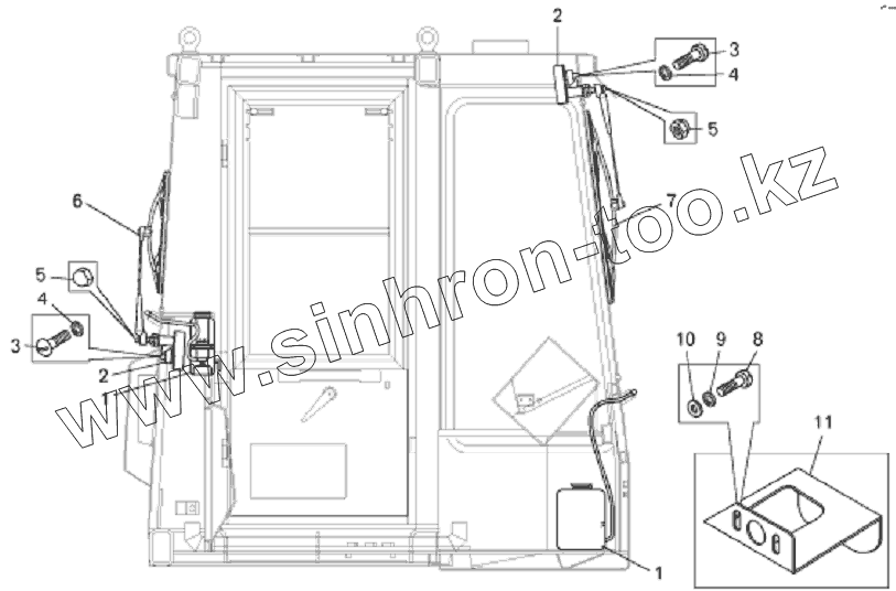 Каталог запасных частей к технике: БелАЗ-7823. Установка стеклоочистителей и стеклоомывателей