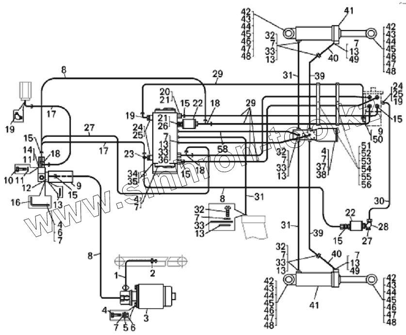 Каталог запасных частей к технике: БелАЗ-7823. Установка трубопроводов рулевого управления