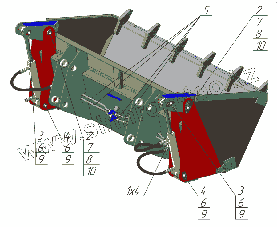Общий вид и основные узлы ковша челюсти РАПТОР ПФН-165