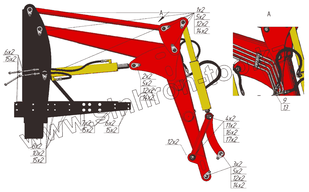 Перечень РВД ковша-челюсти РАПТОР ПФН-165