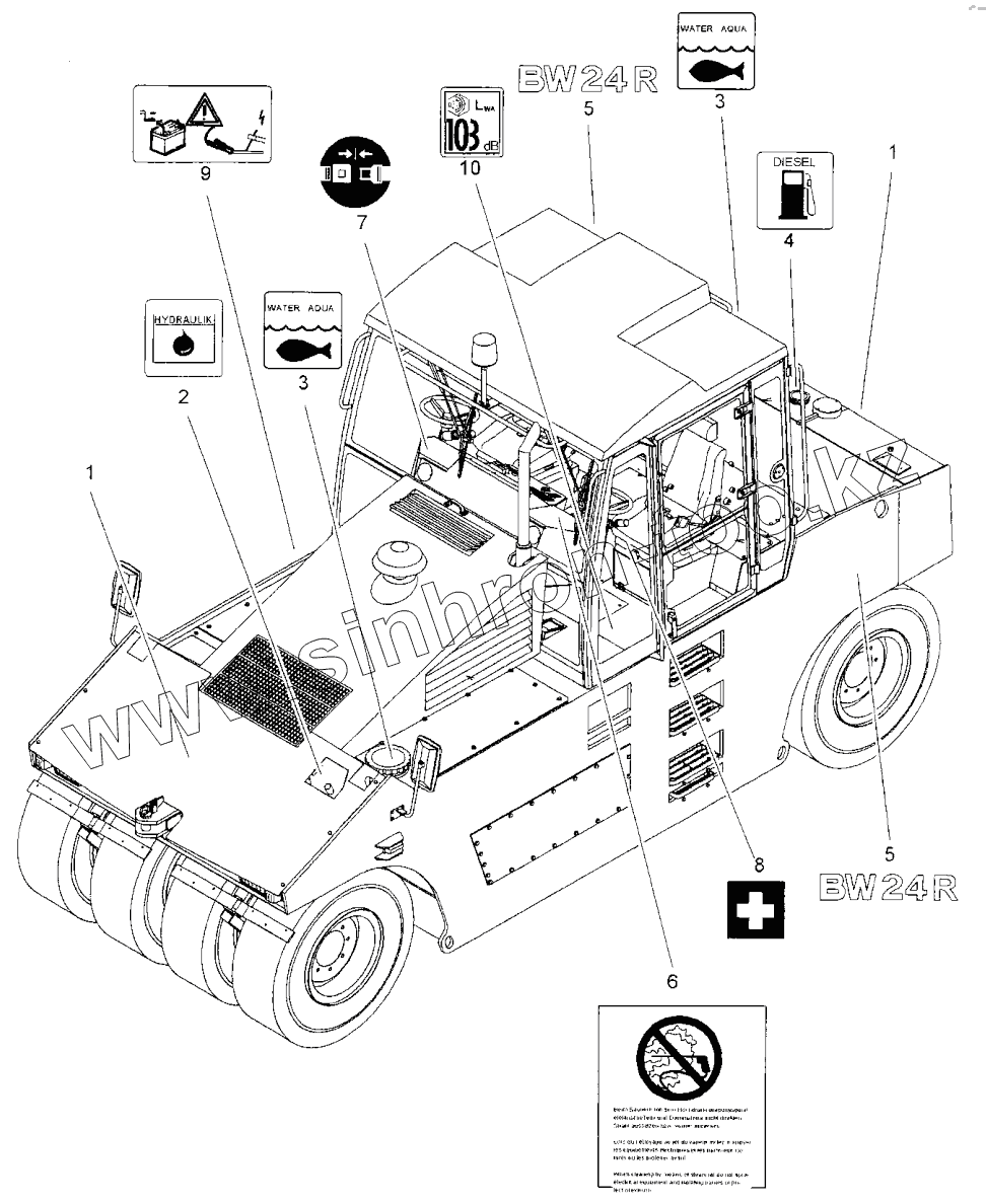 Каталог запасных частей к технике: BOMAG BW 24R. Decals