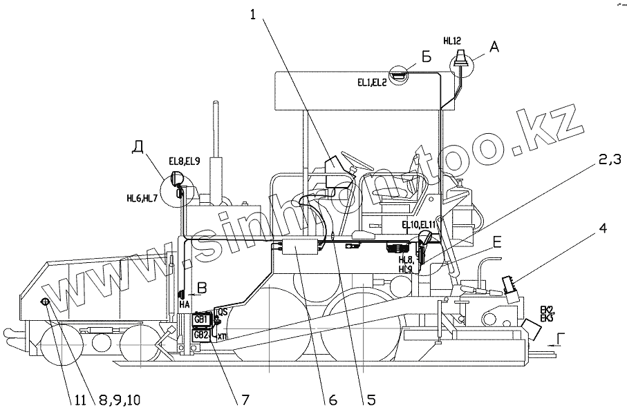 Каталог запасных частей к технике: Брянский Арсенал АсфК-3-02. Электрооборудование асфальтоукладчика