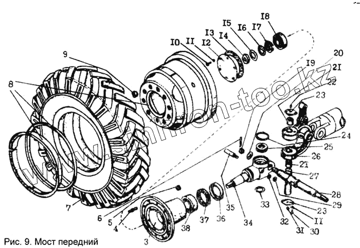 Каталог запасных частей к технике: Брянский Арсенал ДЗ-143. Мост передний (Колесо и ступица)