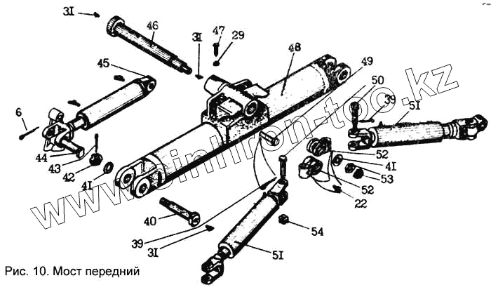 Каталог запасных частей к технике: Брянский Арсенал ДЗ-143. Мост передний (Установка цилиндров)