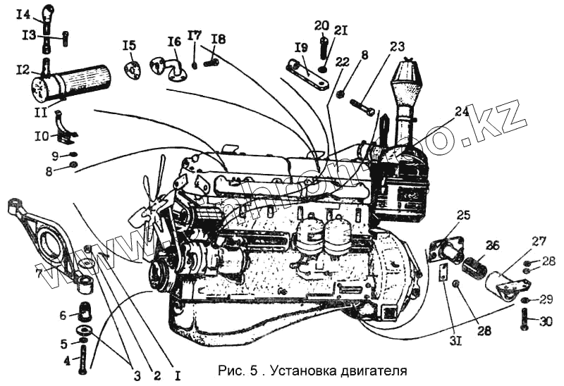Каталог запасных частей к технике: Брянский Арсенал ДЗ-143. Установка двигателя