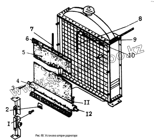 Каталог запасных частей к технике: Брянский Арсенал ДЗ-143. Установка шторки радиатора