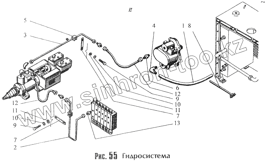 Каталог запасных частей к технике: Брянский Арсенал ДЗ-180А. Гидросистема (240.05.00.00.000)