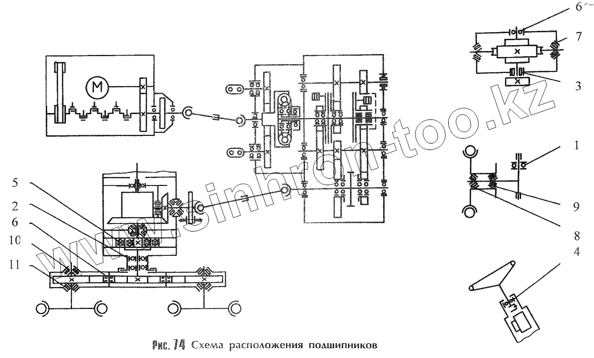 Каталог запасных частей к технике: Брянский Арсенал ДЗ-180А. Схема расположения подшипников