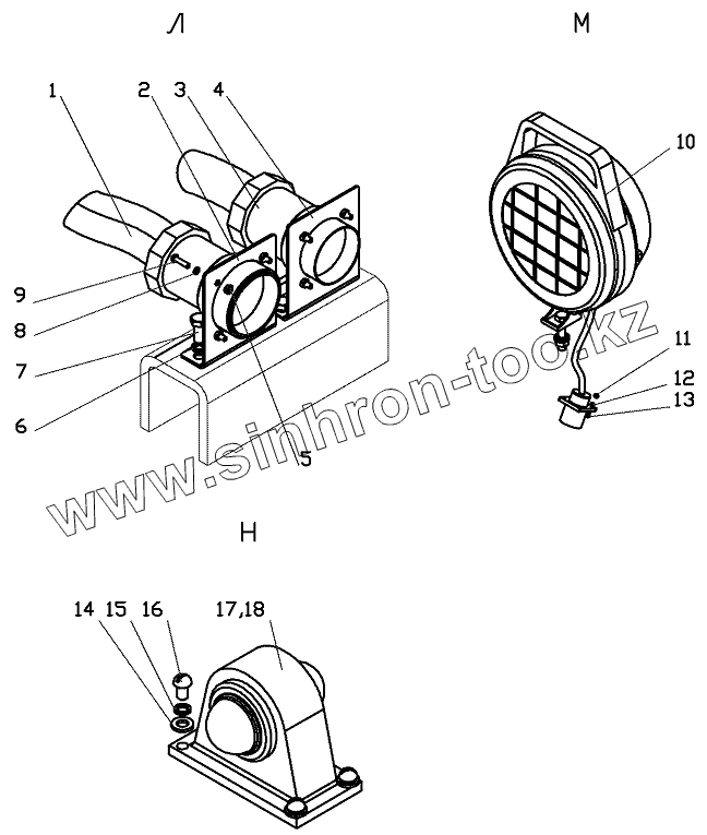 Каталог запасных частей к технике: Брянский Арсенал ФДХС-К-1000-01. Электрооборудование фрезы