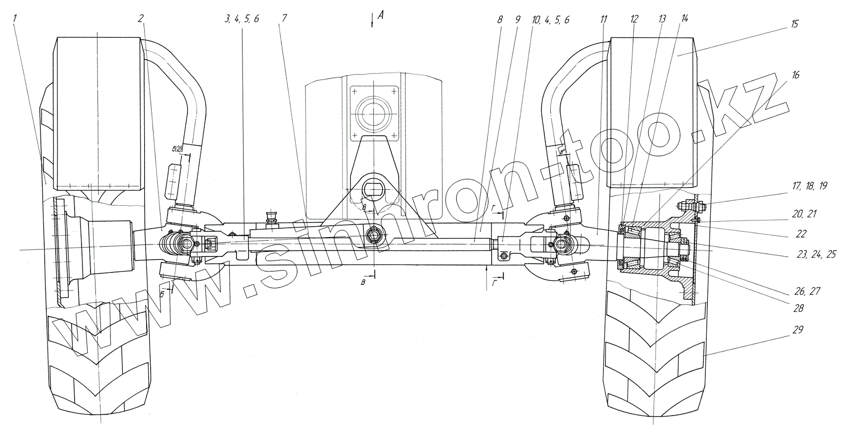 Каталог запасных частей к технике: Брянский Арсенал ГС-10.07. Мост передний