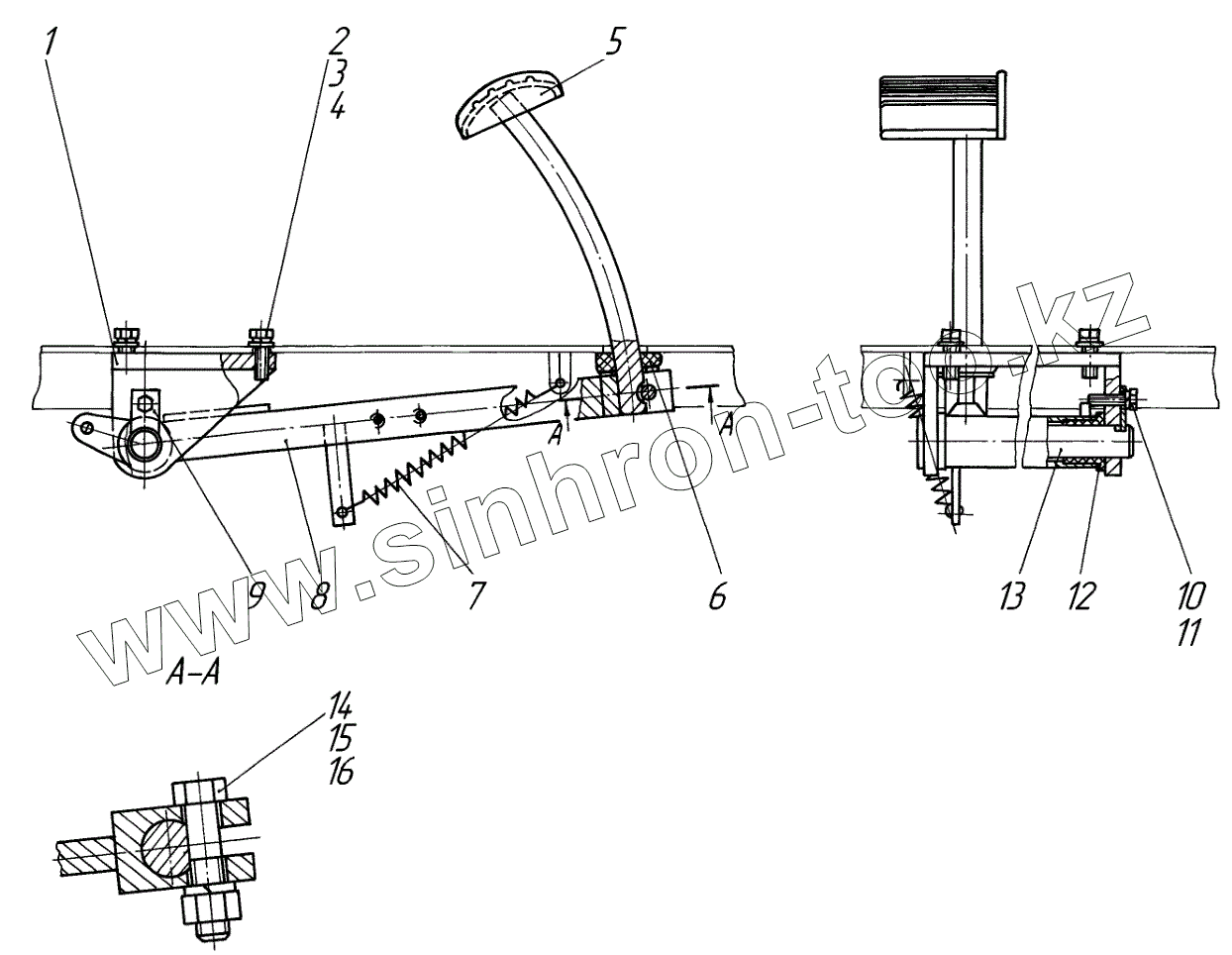 Каталог запасных частей к технике: Брянский Арсенал ГС-10.07. Установка педали тормозов