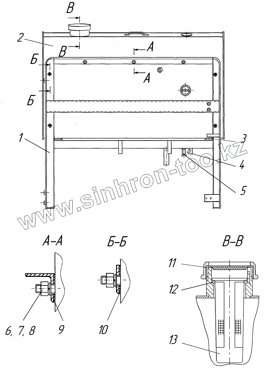 Каталог запасных частей к технике: Брянский Арсенал ГС-10.07. Установка топливного бака