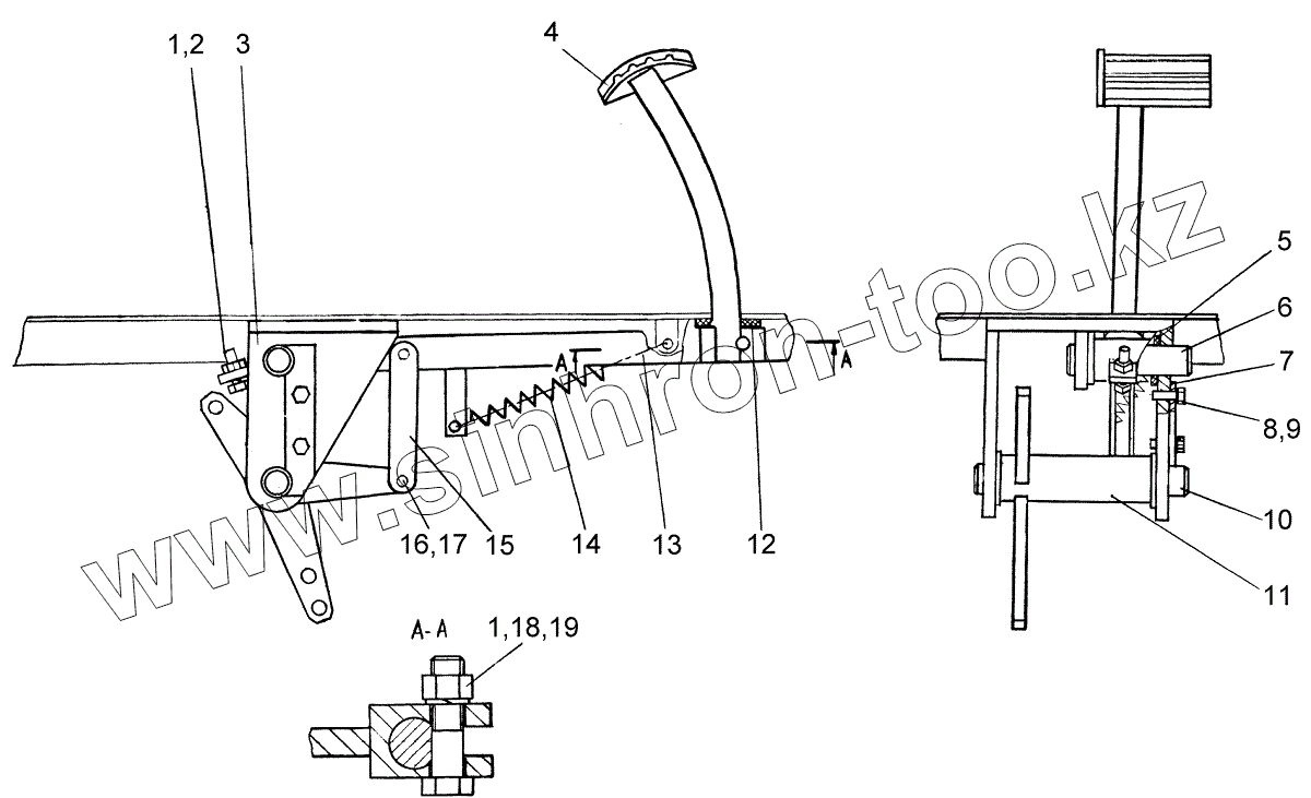 Каталог запасных частей к технике: Брянский Арсенал ГС-14.02. Установка педали сцепления