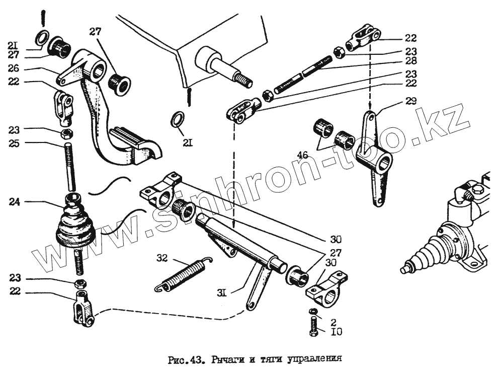 Каталог запасных частей к технике: Брянский Арсенал ГС-14.02. Рычаги и тяги управления