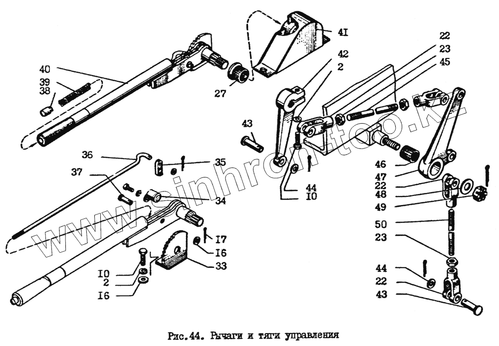 Каталог запасных частей к технике: Брянский Арсенал ГС-14.02. Рычаги и тяги управления