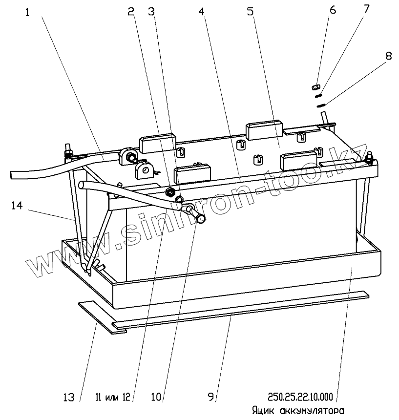 Каталог запасных частей к технике: Брянский Арсенал ГС-14.02 (250-22). Установка аккумулятора