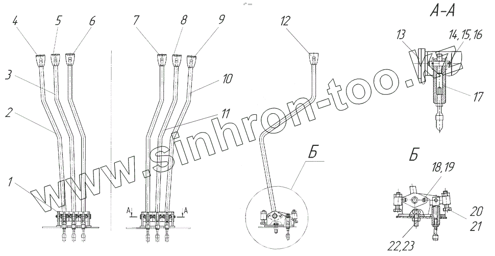 Каталог запасных частей к технике: Брянский Арсенал ГС-18.05-20 (752-20). Установка рычагов