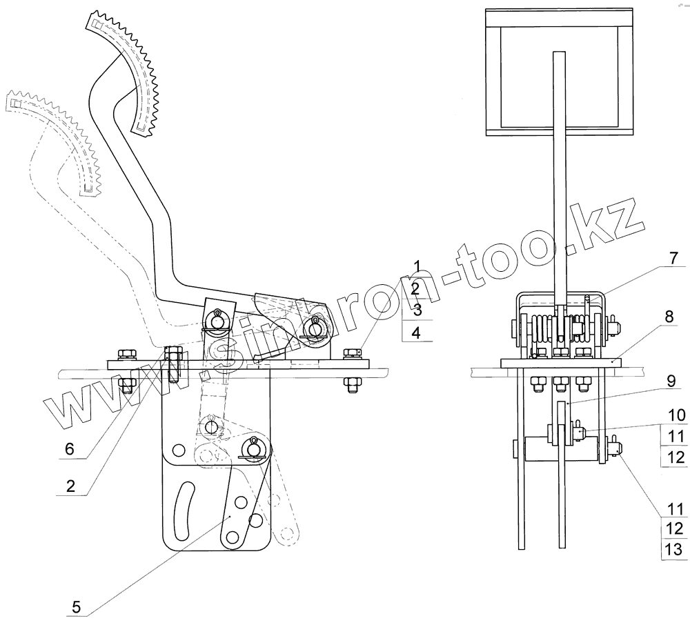 Каталог запасных частей к технике: Брянский Арсенал TG-140. Педаль газа 171.03.01.00.000