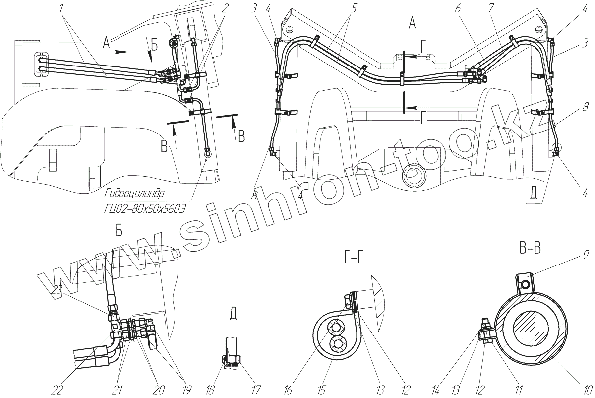 Схема гидравлическая соединений. Гидросистема рамы подмоторной