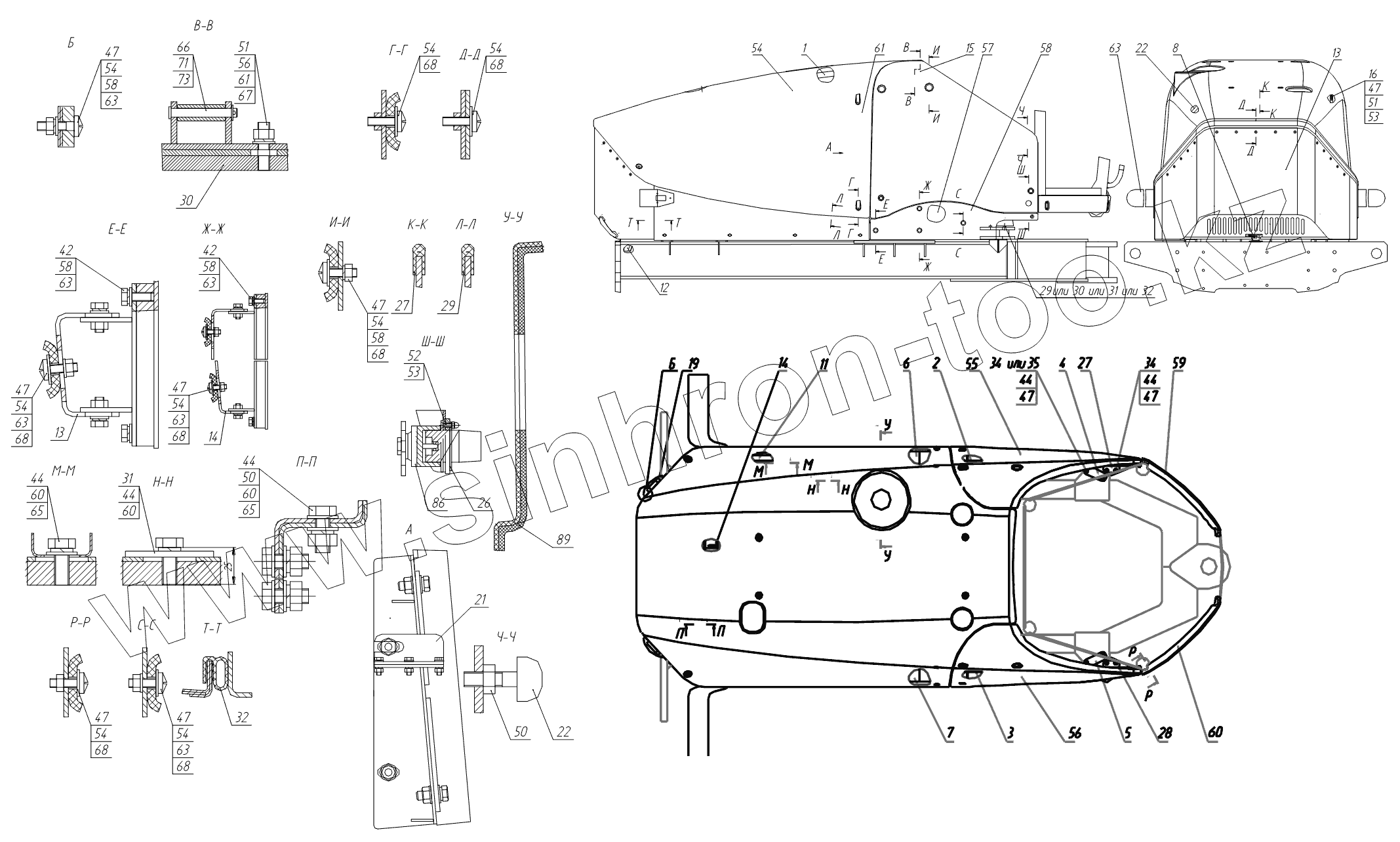 Каталог запасных частей к технике: Брянский Арсенал TG-180. 172.00.00.00.000 Облицовка