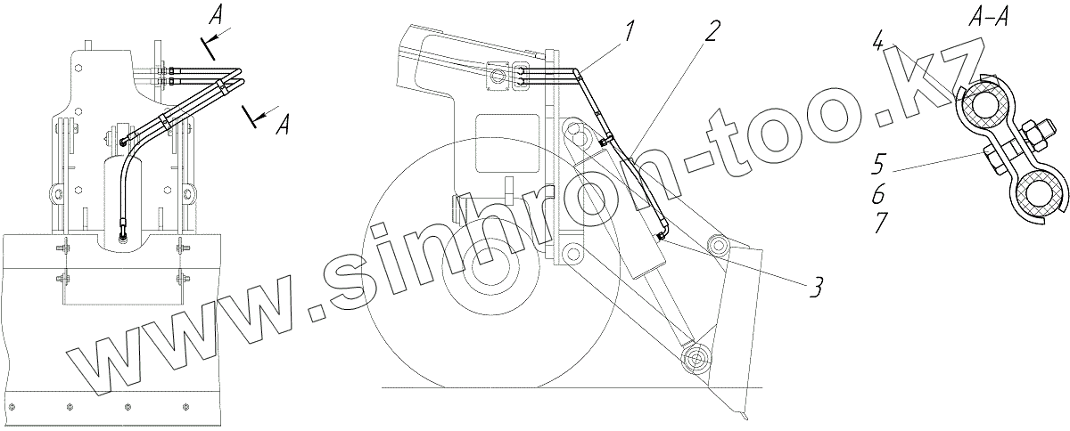 Каталог запасных частей к технике: Брянский Арсенал TG-250. Гидросистема отвала переднего