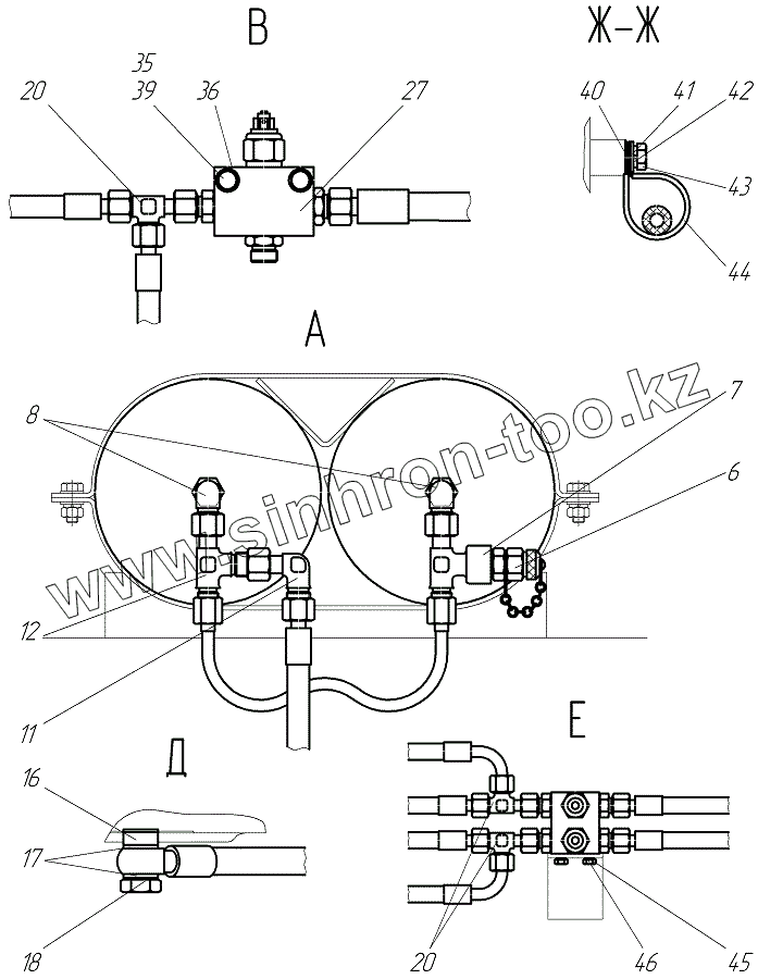 Каталог запасных частей к технике: Брянский Арсенал TG-250. Гидросистема тормозов